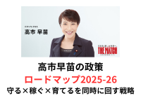 高市政権の公約は、暮らしの防波堤(家計・医療・公共交通・防災)を厚くしながら、稼ぐ源泉(次世代炉・核融合・半導体・データセンター・全固体電池・ペロブスカイト)へ資金と人材を集中投下し、人を育てる仕組み(大学改革・職業教育・女性登用・家事育児の税額控除)で持続可能性を底上げする構図です。初動100日で“骨組み”を固め、年末税制→通常国会→当初予算の三段ロケットで制度を打ち上げる――これが最短距離の実装シナリオだと考えます。