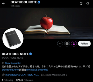 一部メディアは、この拡散元についてDEATHDOL NOTEが投稿したと報じています(※ここは媒体により書きぶりに差があります)。