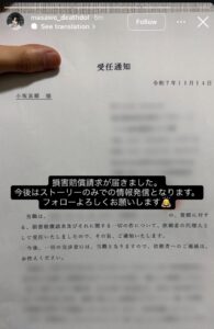 2025年11月19日:損害賠償請求が届いたとされ、X投稿停止→Instagramストーリー中心へ
